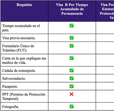 A continuación te mostramos las características comunes de la visa Por Tiempo Acumulado de Permanencia y la visa Por Aplicación del Estatuto Temporal de Protección de Migrantes Venezolanos:
